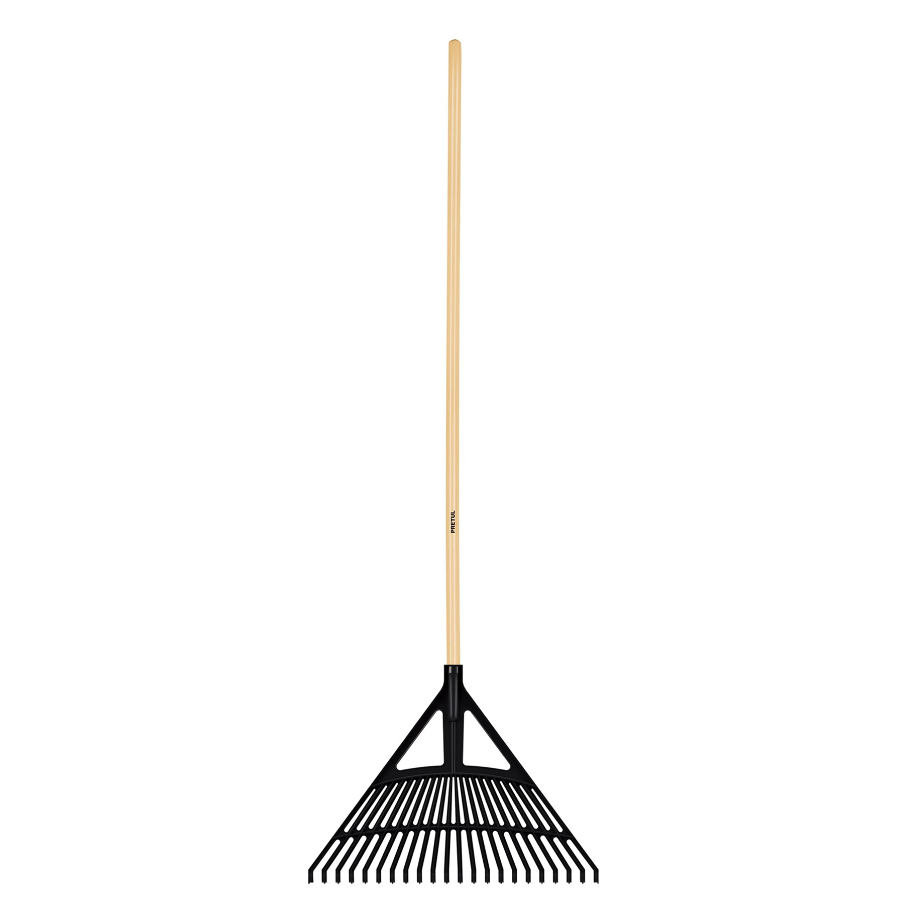 Escoba plástica flex. p/jardín, 22 dientes mango de 48"